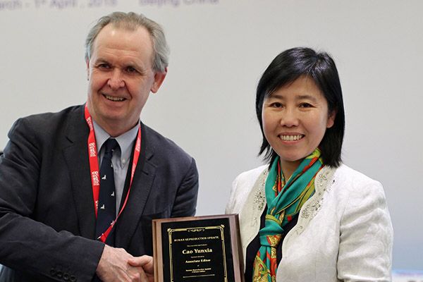 欧洲生殖医学学会主席Roy G. Farquharson教授为为曹云霞教授颁发证书