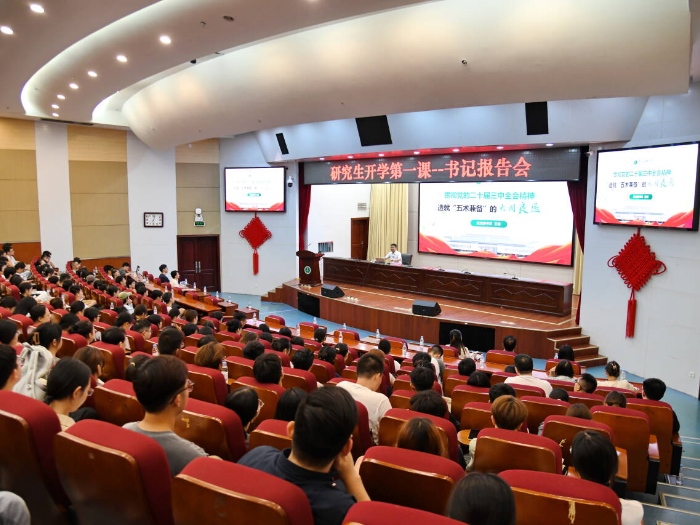 报告会在线上线下同步直播,该校全体2024级研究生新生和2023级“5+3”一体化学生共同聆听“开学第一课”。(郭壹凡 毛丽娟)