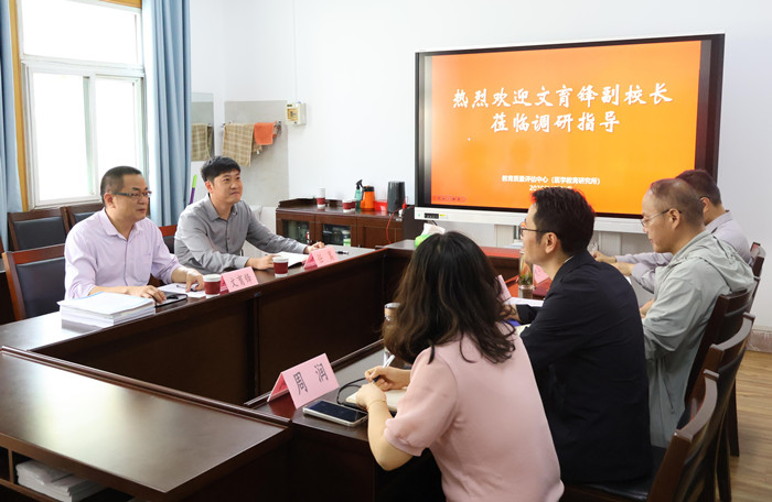 4月28日下午,校党委常委、副校长文育锋深入教育质量评估中心(医学教育研究所)调研,实地了解部门建设情况,指导教育质量评估与医学教育研究工作。