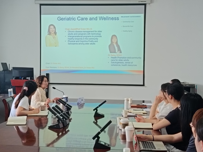 在护理学院学术报告厅,王文茹以“护理与健康科学研究中多成分复杂干预的开放与评估过程——HOM-HEMP Study”为主题开展首场讲座。她表示,护理科研课题应旨在发现并解决临床环境下对护理的真实需求与当下实践不足的矛盾,科研道路离不开热情、坚韧与定力。她还对护理学院青年教师进行针对性讲座,以新加坡国立大学护理教育体系为切入点,围绕办学历史、项目设置、教学特色、科研发展等方面内容展开。