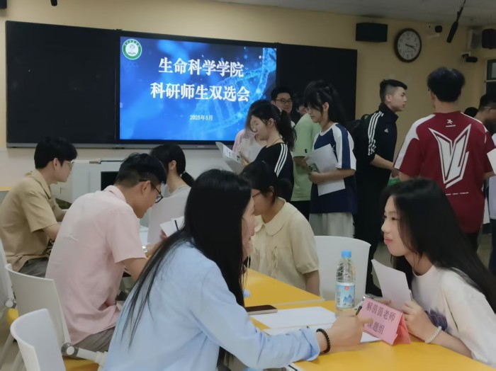 5月28日下午,生命科学学院科研师生双选会在东校区弘毅楼502教室火热开启,来自学院18个不同研究方向的课题组和近百名研究生、本科生参与。