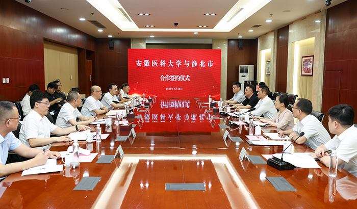 7月16日,校党委书记王琦率队赴淮北市送任干部,与淮北市委书记汪华东就进一步深化校地合作进行座谈交流,并共同见证合作签约仪式。淮北市委常委、组织部部长金更华主持仪式,市委常委、秘书长、政法委书记徐胜利,校党委常委、组织部部长、统战部部长李震静参加。