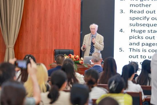 马丁·埃文斯爵士在报告中系统回顾了小鼠胚胎干细胞技术的研发历程,阐述了小鼠胚胎干细胞的发现、发展和作为基因遗传的载体所起到的作用。他提到,小鼠胚胎干细胞具有自我更新和不定向分化的特性,可以分化为多种细胞类型,通过基因编辑等手段对其进行修饰和控制,从而实现对基因功能和生物发育的研究。同时,他还回忆了自己获得诺贝尔奖的经历,激励青年教师和学子勇于向未知领域发起探索。