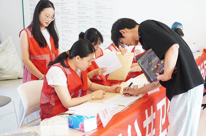 9月13日、14日,我校4400余名2025级本科新生以及第二批2132名研究生新生,分别在我校新医科中心、梅山路校区、翡翠路校区铜陵路校区等四个校区报到入学,正式开启新篇章。校党委书记王琦、校长翁建平,校党委常委、副校长文育锋、田仰华、邱志海等深入报到现场,看望慰问新生及学院迎新工作人员,详细了解迎新工作进展以及服务保障落实情况。