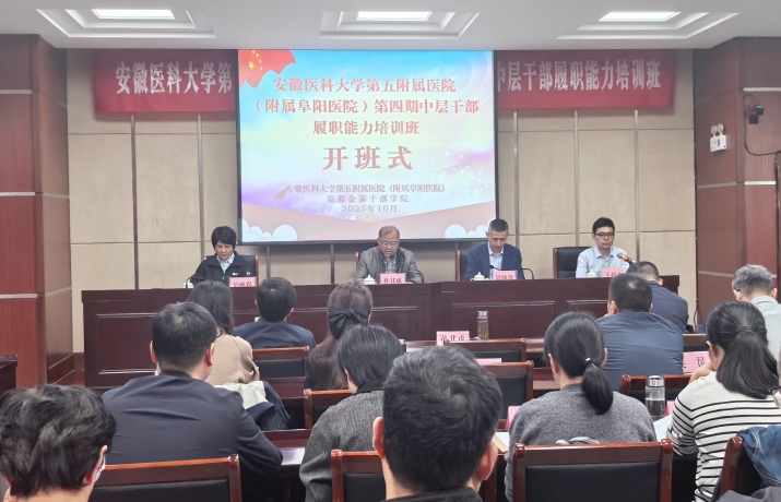 10月17日至19日,第五附属医院在安徽金寨干部学院举办第四期中层干部履职能力培训班,激励医院中层干部在推动皖北医疗卫生事业均衡高质量发展的进程中主动担当作为,为助力学校创建“双一流”大学凝聚力量。院党委书记孙其虎出席开班仪式并作动员讲话,安徽金寨干部学院副院长吴继彩致欢迎辞,五附院院领导、顾问参加。