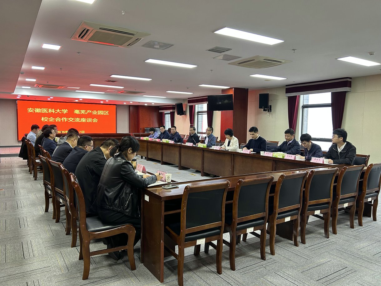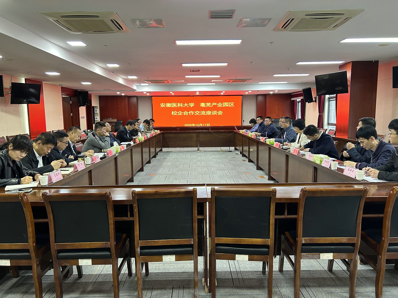 10月17日,校党委常委、副校长文育锋带队,赴亳州亳芜现代产业园区开展调研交流。亳芜现代产业园党工委书记、管委会主任汤德余主持座谈会议,党工委委员、管委会副主任马军以及亳州市芊荷药业、安徽鑫泰药业、天马(安徽)国药科技等企业负责人参加座谈。